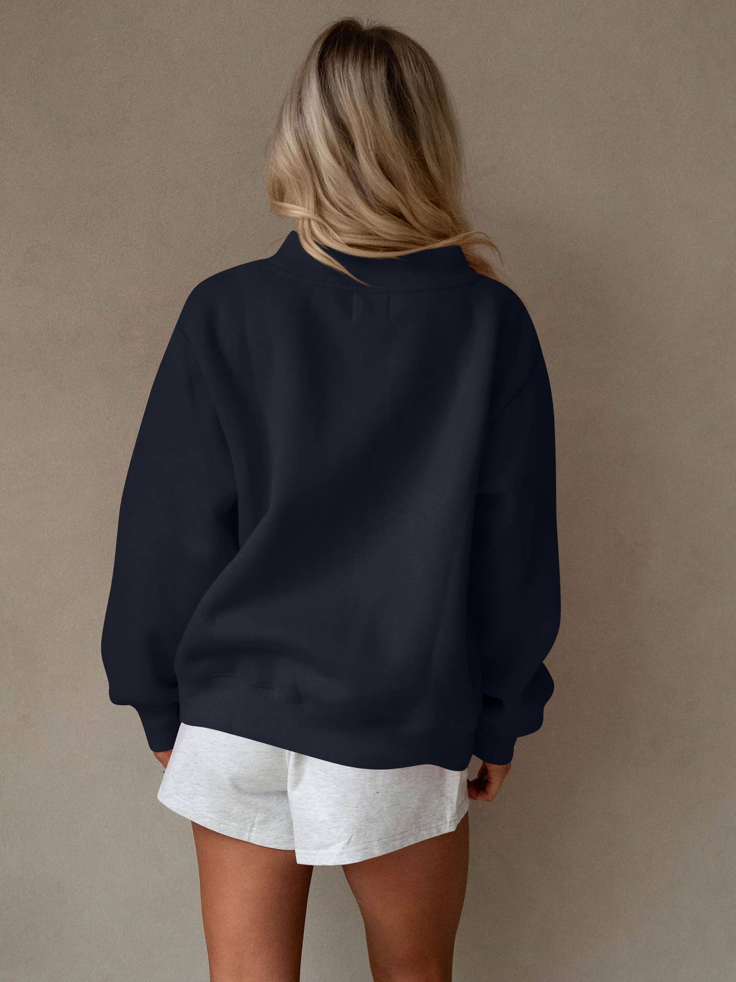 Fleece Mock Neck Pullover in Navy