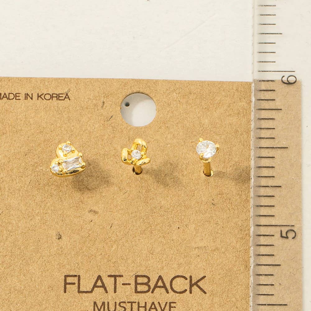 3-Piece Mixed Heart Flat Back Studs in Gold