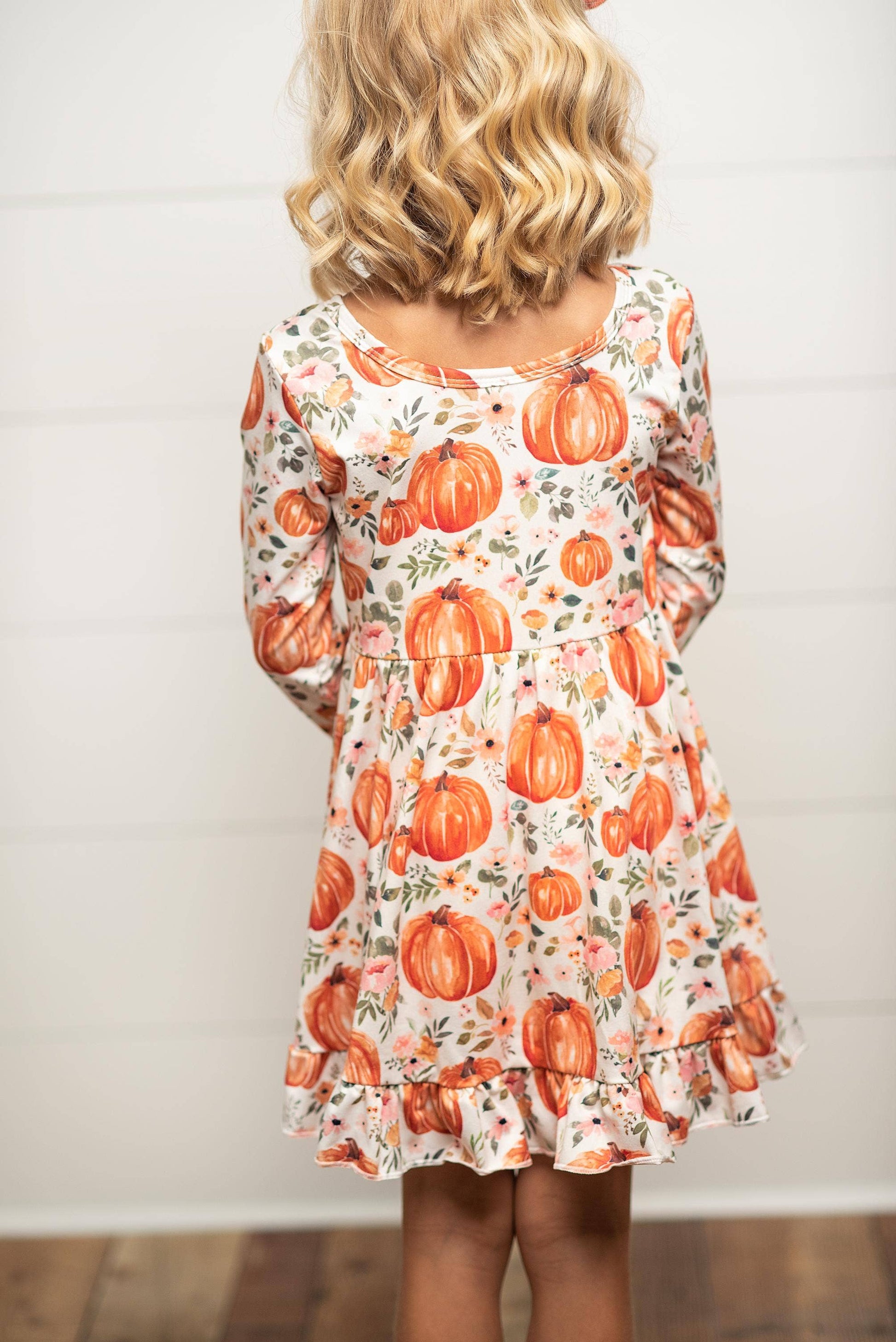 Kids Pumpkin & Floral Twirl Dress